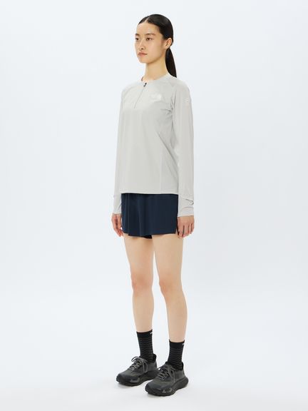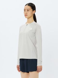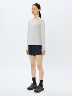 生地の肌面にはっ水糸を使用することで、汗を素早く表に吸い上げてドライ感をキープ。風を受けやすい前身頃には、軽量な防風素材をハイブリッドに組み合わせています。長めに設計したフロントファスナーは大きく開閉でき、気温や状況に合わせて衣服内をスムーズに温度調整できます。襟口や袖口は肌当たりのいいフラットな縫製で肌との干渉を軽減。銀イオンによるポリジン・ステイフレッシュ加工の抗菌防臭性を備えています。