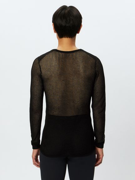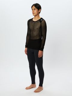 クルーネックの長袖シャツは、重ね着をしても見えにくい広めの襟ぐり。フィット感の高いシルエットに仕上げています。軽くあたたかな着心地で汗冷えを軽減する、雪山登山やスキーなどのスノーシーンにも適したアイテムです。