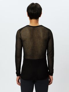 大きなメッシュ構造の生地は、身体から出た汗をウエア表面へ素早くシフトし、肌に触れる面を快適に保ちます。ウールならではの保温性と肌触りのよさも特徴。パックなどに干渉しやすい肩部分は、天竺素材にしています。