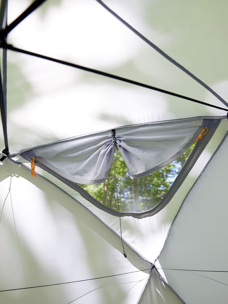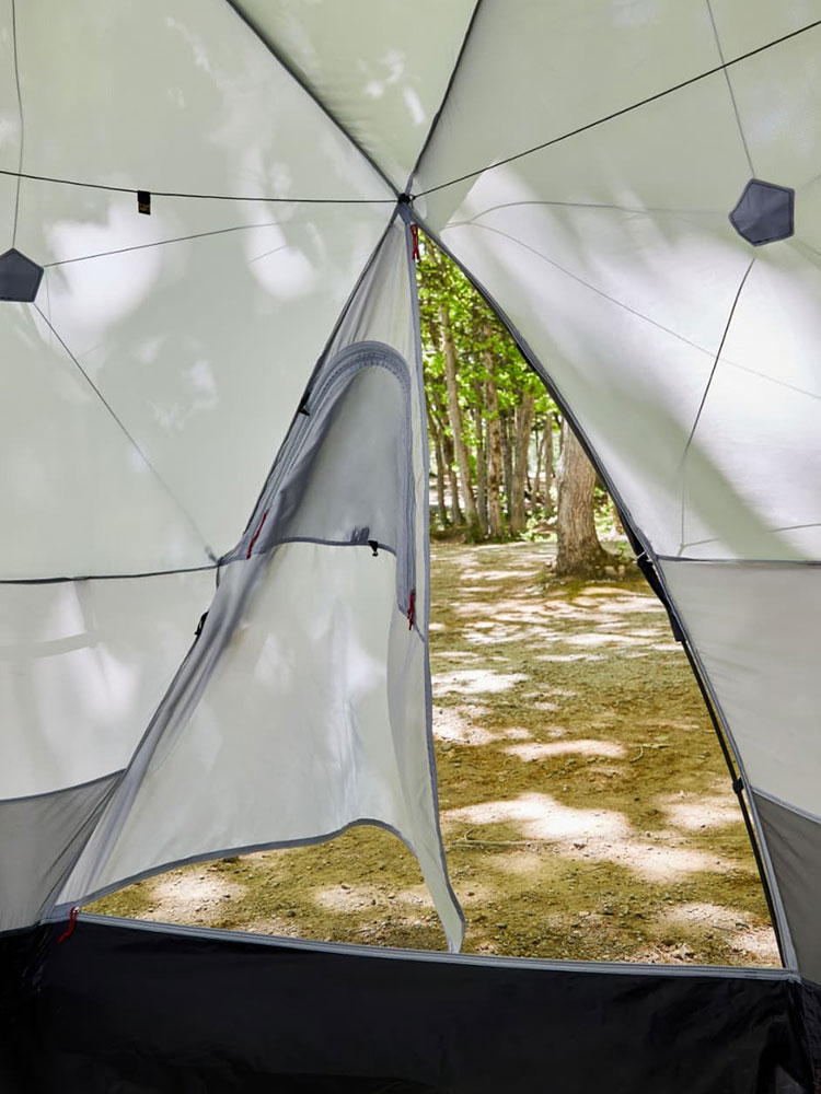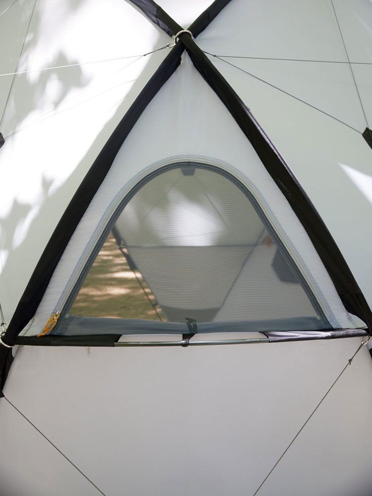 - 6本のポールで設営できるジオデシック構造による球体ドーム/強度をアップさせる6か所のテンション構造/容易に行動できる2.1メートルの天井高/9角形で防水性も高いバスタブ構造のフロア/5か所のメッシュポケット/5か所のメッシュつきウィンドウ/単体でも使用可能な4つのリムーバブルオーガナイザー/クイックオープン機能を持つ2か所のトップベンチレーションウィンドウ/テンショナーつきハンギング用ライナーコード/フルシームされたフライシート/大型ダッフルスタイルの収納袋/ガイライン