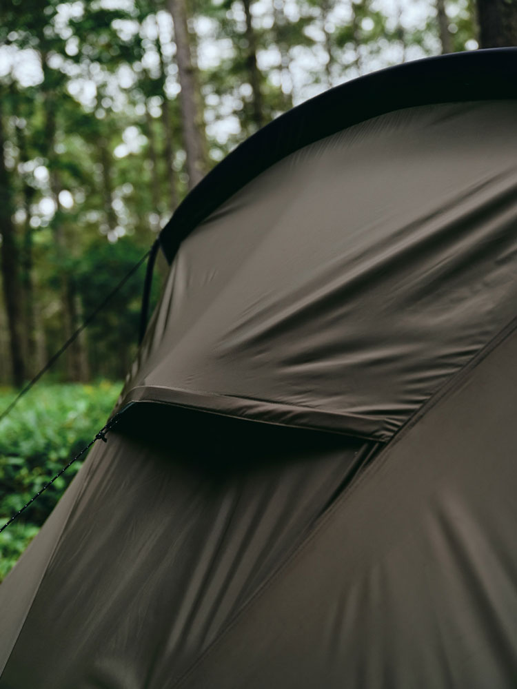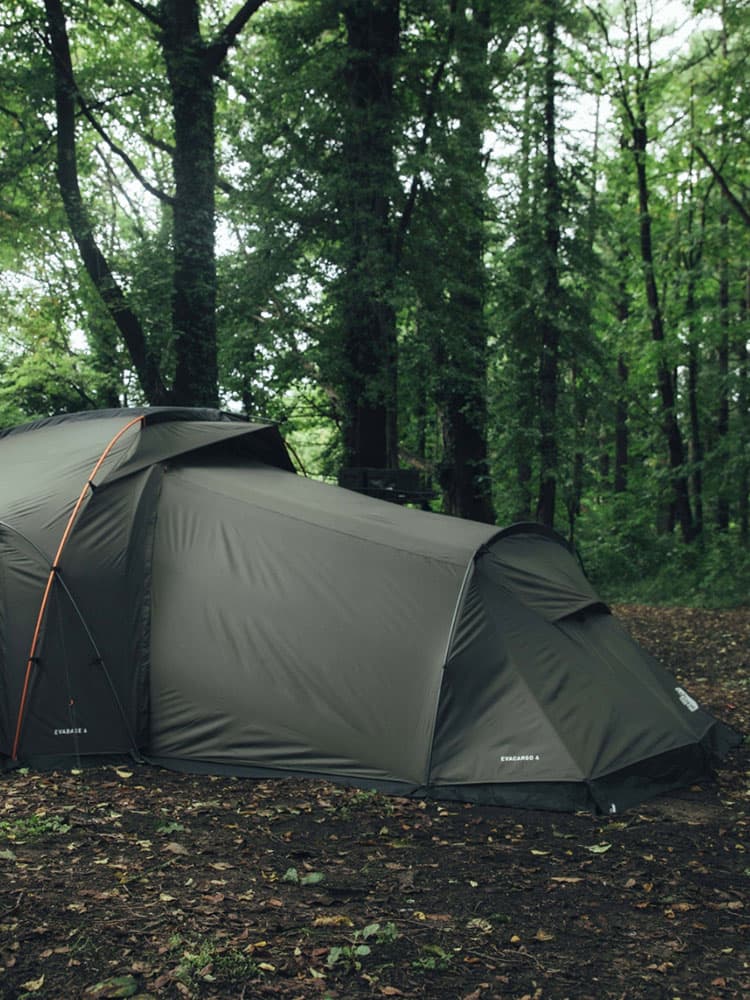オートキャンプ時の利便性を追求した、同シリーズで連結が可能な4人用テントです。ダブルウォールのアウトフレーム構造で、アウターのみで使用することができ、付属インナーは吊り下げ式で、天候に左右されることなく容易な設営と取り外しができます。出入口面は、キッチンやリビングスペースとして活用できる大型シェルターEvabase 6(NV22320/NV22320R)と連結が可能(最大2張りまで)。4シーズンに対応するスノースカート付き。収納と携行に便利なダッフル型の収納ケースが付属します。