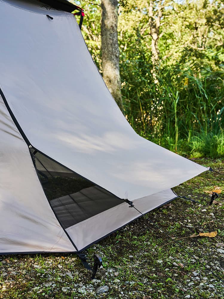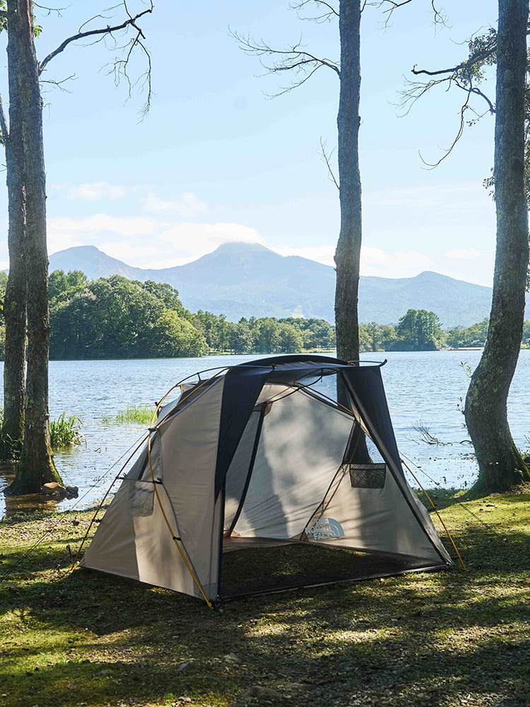 遮光性と通気性を備えた、暑い時期のキャンプにおすすめの2人用シェルターです。