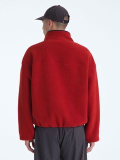 袖口と裾はゴム仕様でほどよいフィット感の確保に加え、左袖に配したレッドボックスの刺繍ロゴがアクセントとなり、カジュアルな街着として日常のさまざまなシーンで活用できる一着です。