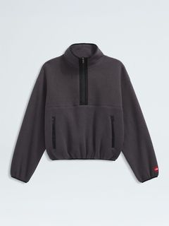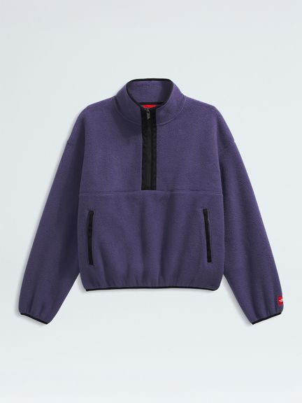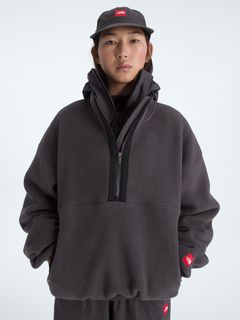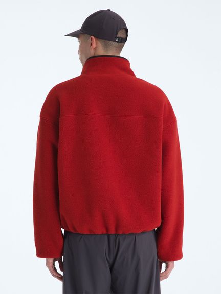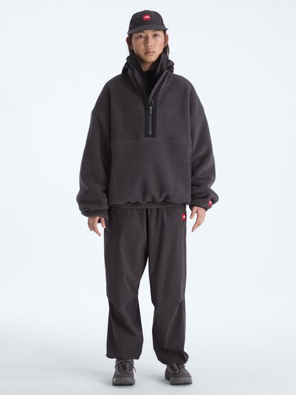 ハーフジップ仕様のフリーストップスでシルエットはゆったりとした着用感のリラックスフィット。カンガルー型のサイドポケットには、セキュリティ性を高めるファスナーを配置しています。