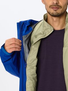 通気性とストレッチ性のあるスリット入りの化繊わたを中わたに採用。登山時に運動量が多く伸縮する部分にスリットを配置することで、運動時はスリットが開いて通気を促し、停滞時は閉じて保温性を高められます。生地には通気性の高い軽量ストレッチナイロンを使用し、体の動きにスムーズに追従。専用ファスナーでアウターシェルと連結できる、ZIP IN ZIPシステム対応。コンパクトに収納でき、携行に便利なスタッフサック付き。