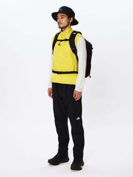通気性とストレッチ性のあるスリット入りの化繊わたを中わたに採用。登山時に運動量が多く伸縮する部分にスリットを配置することで、運動時はスリットが開いて通気を促し、停滞時は閉じて保温性を高められます。生地には通気性の高い軽量ストレッチナイロンを使用し、体の動きにスムーズに追従。専用ファスナーでアウターシェルと連結できる、ZIP IN ZIPシステム対応。コンパクトに収納でき、携行に便利なスタッフサック付き。