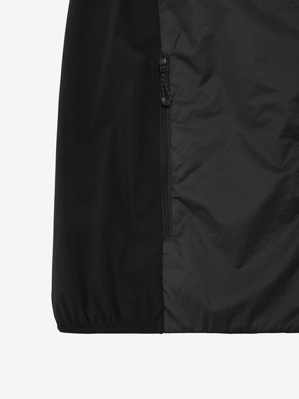 - <前身頃・袖>Recycled 12D Light Twist Nylon(ナイロン100%)<後身頃・脇下>12D Light Stretch Nylon AC Coating(ナイロン68%、ポリウレタン32%)<前身頃・上腕>VENTRIX ECO 25g(ポリエステル100%)<背中・袖下>VENTRIX ECO 15g(ポリエステル100%)