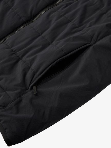 表地は軽量ながら強度のあるリップストップナイロン。はっ水加工を施し、多少の雨や雪に対応します。中わたには独自開発の保温素材・HEATSEEKERを採用。軽量でかさ高があり、保温性を高めています。両サイドと左胸にファスナーポケットを配置し、収納力を確保。裾と袖はシンプルなバインダー仕立てです。専用のファスナーで別売りのアウターに連結できるZIP IN ZIPシステムに対応しています。