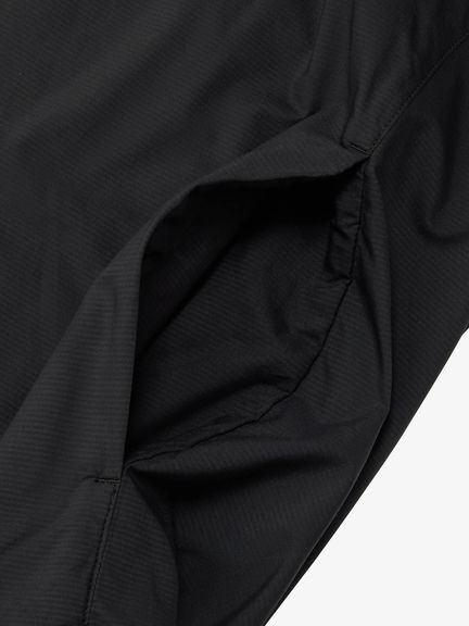 中わたに、通気性とストレッチ性に優れるスリット入りの化繊わた「ベントリックス」を採用。運動量が多く動きの大きい肩部分に配置したスリットが、運動中は開いて換気を促し、休憩中は閉じて保温性を高めます。脇下は、通気性を高めるために、中わた抜きのデザイン。表地には、通気性と防風性を両立した「パーテックスカンタムエア」を使用し、「ベントリックス」との相乗効果で蒸れを逃がして快適な衣服内温度をキープします。