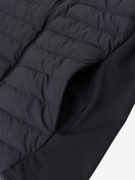 - <表地>PERTEX QUANTUM ECO 20D Ripstop(ナイロン100%)<中わた(肩以外)>THERMOPLUME+(ポリエステル100%)<脇・袖下>AL Motion Fleece with Hard Face Print(ポリエステル49%、ナイロン40%、ポリウレタン11%)<裏地>Recycled Nylon Taffeta(ナイロン100%)<中わた(肩のみ)>PLIMALOFT Insulation Black BIO 80g(ポリエステル100%)