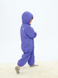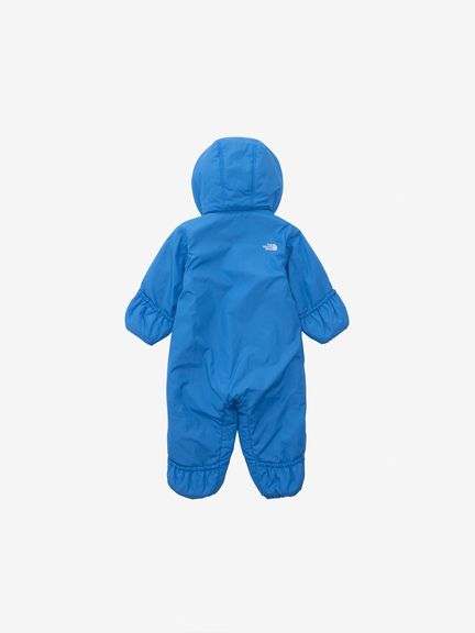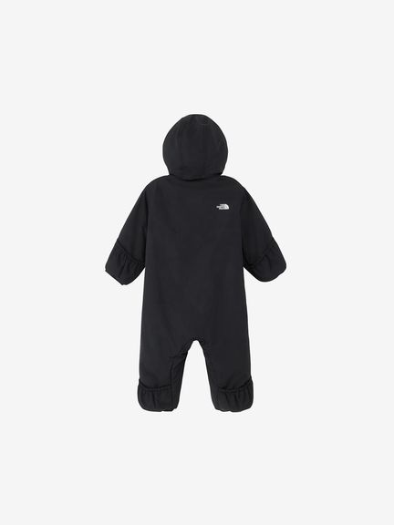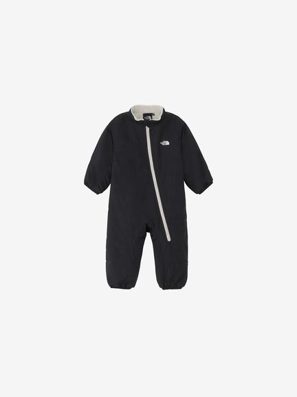 裏地には毛足のあるシェルパフリース、表地には軽量ではっ水性のあるリップストップナイロンを採用しています。手と脚の先はひっくり返すとカバーになる仕様。フードは取り外しが可能です。