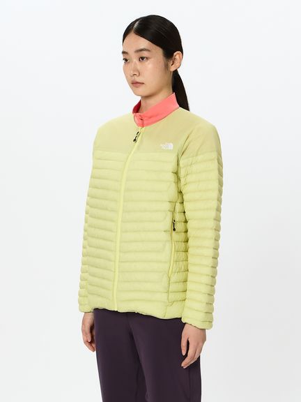 身頃には、高度な洗浄技術により汚れを徹底的に除去し、はっ水加工を施したクリーンなダウンを使用。パックでつぶれやすい肩部分には板状の化繊わたを配置。生地にはソフトな肌触りで軽く、強度も兼ね備えるパーテックスカンタムを使用。本体を左胸内ポケットに収納できるポケッタブル仕様です。専用ファスナーでアウターシェルと連結できる、ZIP IN ZIPシステム対応。