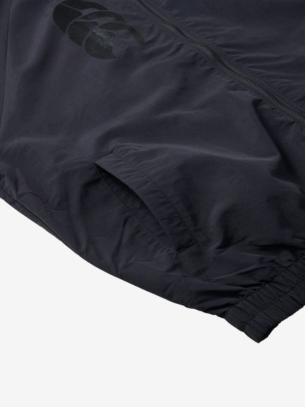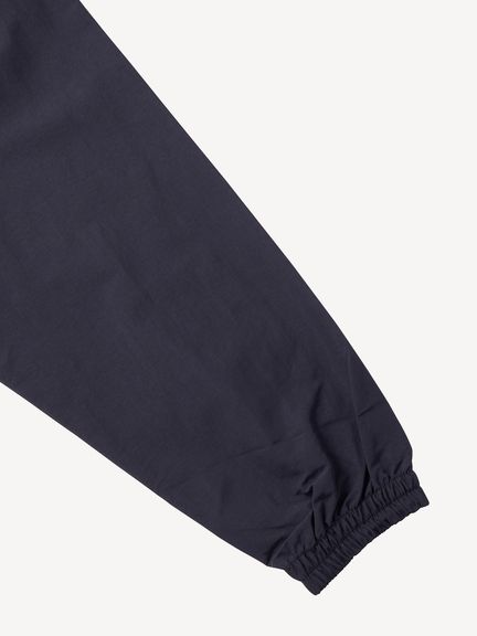 ナイロンでありながら天然素材のようなナチュラルタッチが特徴で、 はっ水加工を施しているので、雨などの急な天候変化に対応します。シルエットは、身幅やアームホールを広めにとり、運動性や着用時のコンフォート性を追求した設計になっています。裏地にナイロンタフタ素材を使用、右胸に同色ロゴプリント加工を施しています。本製品は環境に配慮したリサイクルナイロンを一部使用しています。