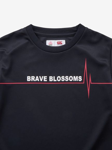 吸汗速乾性に優れ、衣服内を常にドライで快適な状態に近づけるFLEXCOOL CONTROL(フレックスクールコントロール)機能素材を採用。フロントにラグビー日本代表の愛称である「BRAVE BLOSSOMS(ブレイブ ブロッサムズ)」、背面には桜のエンブレムをプリントしています。本製品は環境に配慮したリサイクルポリエステルを使用しており、また、有害な紫外線から肌を守るUVガード機能(UPF30~50+、紫外線カット率90%以上)も付加しています。