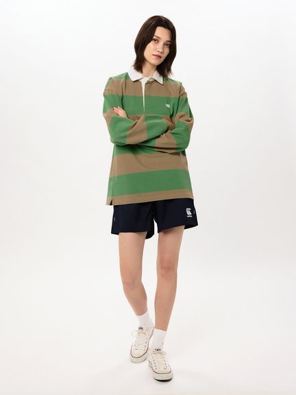 このヘヴィーウェイトにニッティングされた素材は重厚でありながら、風合いの良さが特徴で、フィールドを選ばず、幅広いシーンで末長く愛用できます。また、ラグビーの母国イングランドで使われてきた比翼仕立ての前立てや、接ぎ目のない筒編み仕様のカフス、裾スリットのバータックなど、カンタベリーのアイデンティティが詰まったアイテムです。