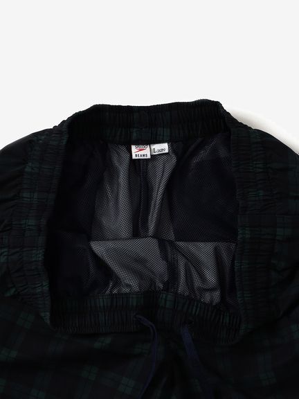 今年はブラックウォッチパターン。裾には2色刷りにてクラシックロゴをマーク。ストレッチ性のあるはっ水素材を使用。UVカット機能(UVプロテクト(UPF50+、紫外線カット率95%以上))つき。メッシュの総裏仕様で水抜け穴も装備。