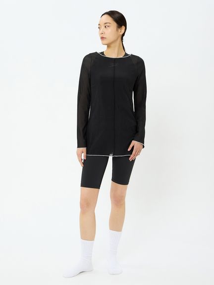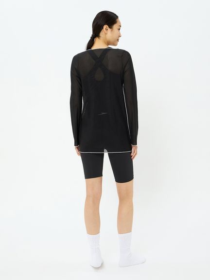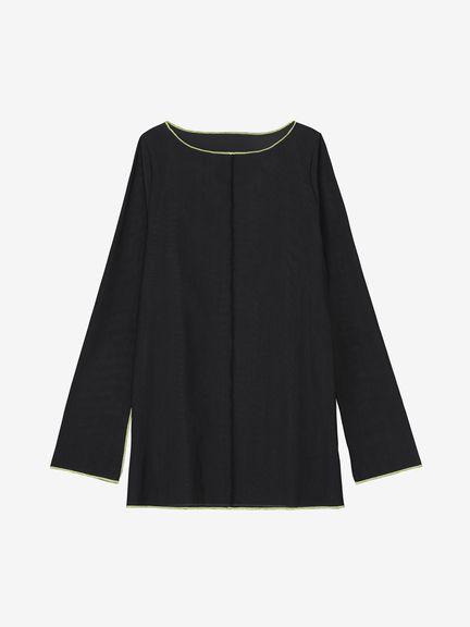 環境に配慮したナイロン素材「Re-Tulle(リ・チュール)」を採用。軽くサラッとした質感です。適度なゆとりと透け感で、インナーとのレイヤードコーディネートが楽しめます。