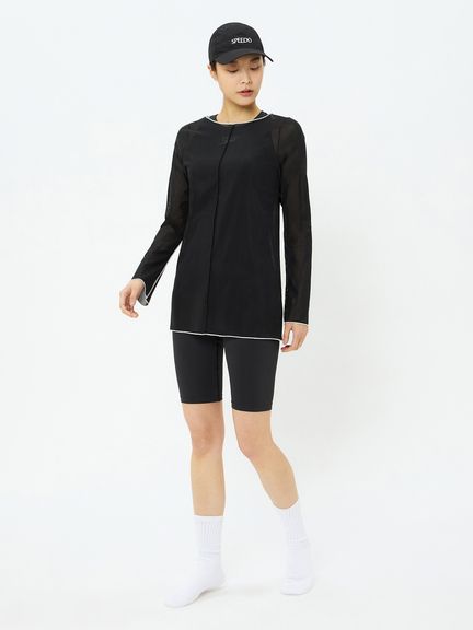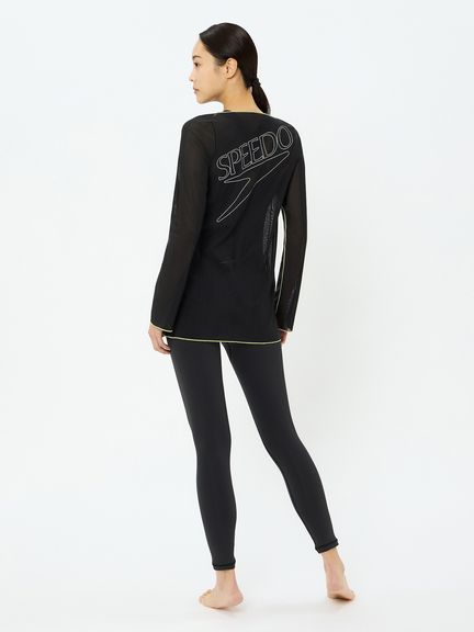 背面にSpeedoのビッグロゴをさりげなくプリントしています。日常使いはもちろん、水着のカバーアップとしても使える一枚です。