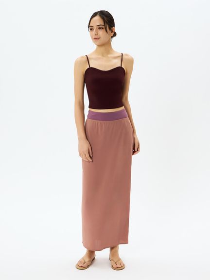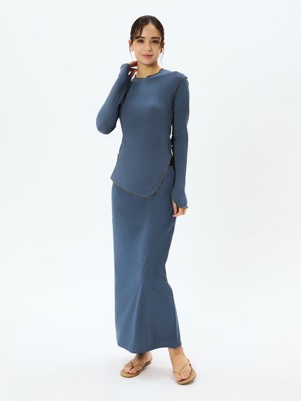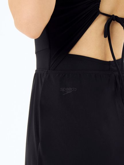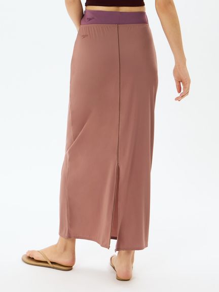 非日常でととのえるこころの健康をテーマに、大人のスイムウエアを提案する「Speedo breath(スピード・ブレス)」。おしゃれに手軽に日焼け対策ができるレディースラッシュスカートです。