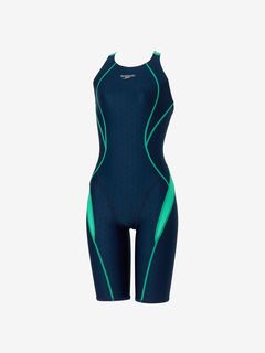 立体設計・立体裁断によるフィット感が水の浸入を軽減し、快適な泳ぎを叶えます。セミオープンタイプよりも小さな背穴で露出を軽減。幅広の肩ストラップが食い込みを抑えます。着脱しやすく、着用時の締め付け感を抑えた腰回りのサイズ感。裾のステッチを表側にすることで、着用中の締め付けと不快感も軽減しています。別売りのカップを使用できるフック受けが付いています(※カップは付属しておりません。SpeedoのハンギングスイムカップSE32001がオススメ)。膝上までのレッグ丈(4分丈)。