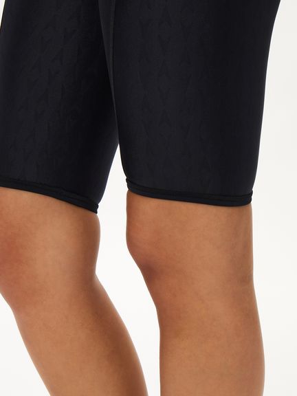 リサイクルポリエステル糸を使用した環境配慮型素材「FLEX Σν(フレックス・シグマ・ニュー)」を採用。透けにくい安心感のある手持ち感と進化した伸縮性がスイマーのアクティブな泳ぎをサポート。表面のブーンエンボス加工が、ボディラインをカバーし、はっ水性が軽量感をキープします。