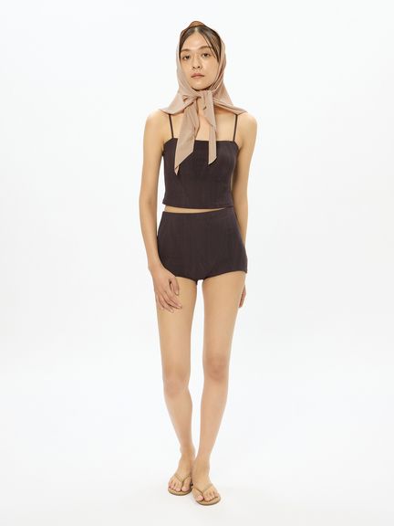 極薄の生地はしなやかな肌ざわり。頭にかぶったり、首元に巻いたり。水着のトップスやボトムスの上から巻いてカバーアップとして楽しむのも◎。一枚プラスするだけでガラリと印象が変わる万能アイテムです。