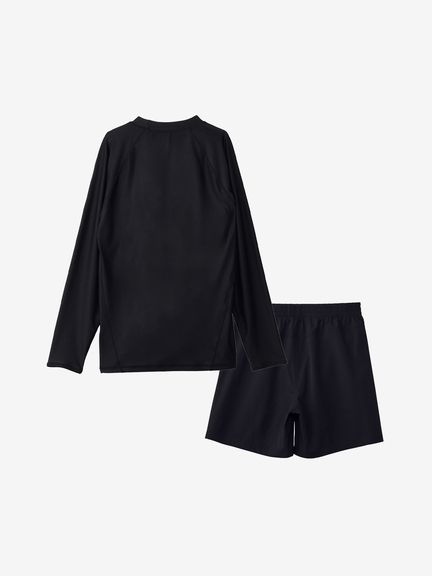 もう迷わない。この1セットでスタイリングが完結です。長袖タイプのトップスはストレッチ性の高いニット素材を採用。ボディラインを拾わない適度なフィット感です。日焼けも水の浸入も軽減するモックネック。UVガード(UPF30-50+、紫外線カット率90%以上)機能付き。ラッシュガードとしてお使いいただけます。