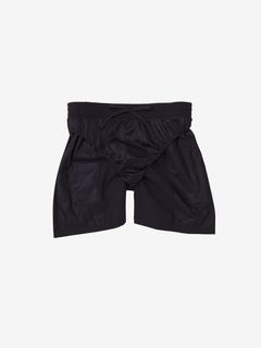 上下セットでありながら、あえてトップスとボトムスで異なる素材を用いて質感に表情を出しています。体にフィットする水着が苦手な方や、小さなお子様と水遊びをされる方にもおすすめのアイテムです。