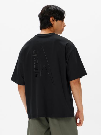 非日常でととのえるこころの健康をテーマに、大人のスイムウエアを提案する「Speedo breath(スピード・ブレス)」。バックプリントが際立つメンズラッシュティーです。