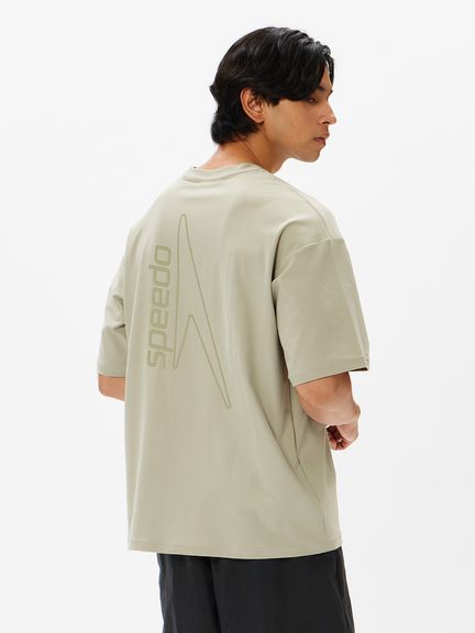 Speedoのビッグロゴを90度縦向きにプリント。インパクトのあるデザインながら洗練された印象です。ラッシュガードとしての使用はもちろん、アスレジャーやタウンにも重宝します。