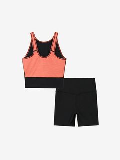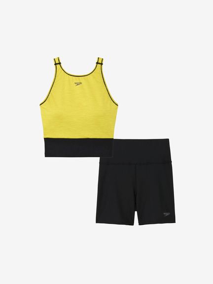 トップスはソフトなストレッチ性が特長の環境配慮型素材を採用。露出の少ない胸元は、水が入りにくく、さまざまな動きに対応し胸元を気にしなくてよいので、アクティビティに集中できます。着脱しやすいUバック。差し込みタイプのカップ付き。飽きのこない上品なミックスカラー。ボトムスは高い耐塩素性・4WAYストレッチ性に加え、身体のラインをひろわず、水中での透けも気にならない環境配慮型素材「ENDURANCE ECO(エンデュランス・エコ)」を採用。ホールド感のあるハイウエスト設計で、さまざまな動きに対応。UVケア(UPF15-30、紫外線カット率85%以上)機能付き。