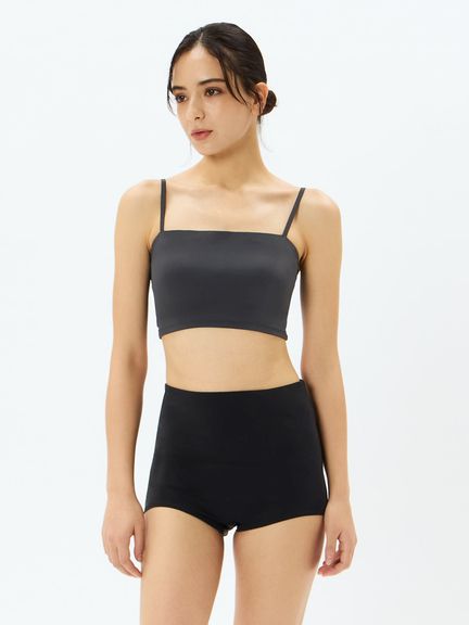 ブラトップは華奢な肩紐とシンプルなデザインで、デコルテをヘルシーに魅せてくれます。縫い込み式のカップ付きです。