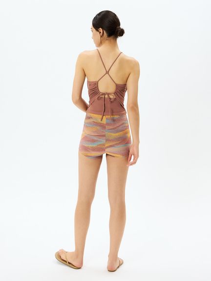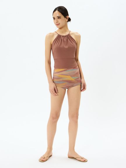 スイムウエアとしての使用はもちろん、トップスは普段使いのカップ付インナーとしても活用いただけます。また旅先では羽織りアイテムをあわせればラウンジウエアとしてもお使いいただけます。