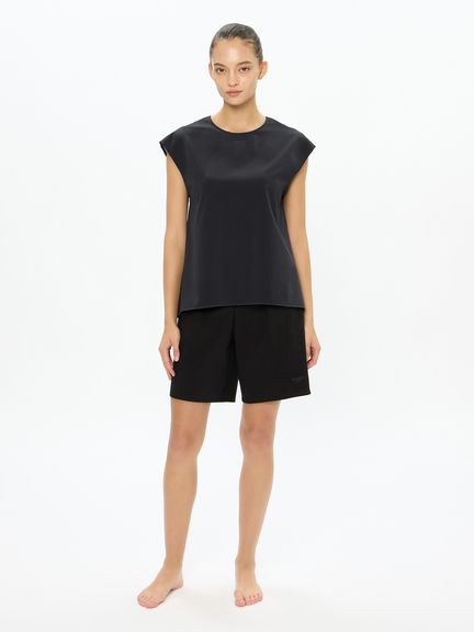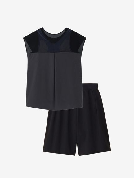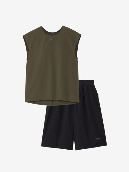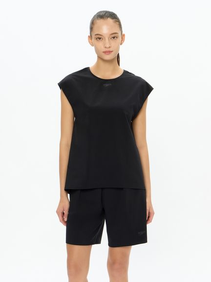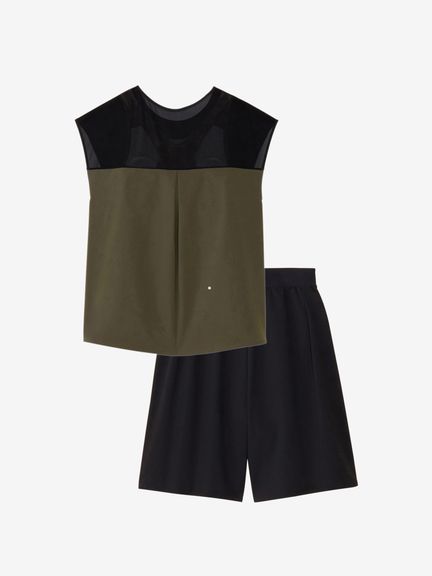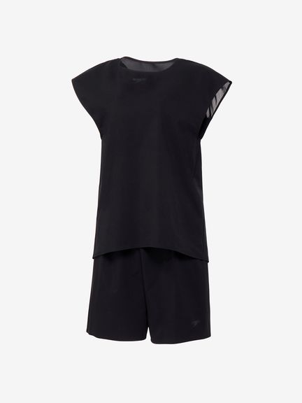 はっ水性とストレッチ性を兼ね備えた環境配慮型布帛素材「Soft&Stretch Taffeta(ソフト&ストレッチ・タフタ)を採用。軽い着心地とさらっとした肌触りで、様々なプールシーンで活躍します。