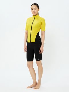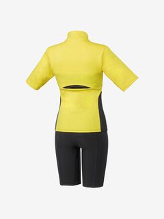 ボトムスはトレーニング中も心地よくフィットしてズレにくい、環境配慮型素材「Ultra Stretch 0(ウルトラ・ストレッチ・ゼロ)」を採用。縦にも横にも自由に伸びる高いストレッチ性。はっ水機能つきで水中でのスムーズな動きをサポートします。膝上までの4分丈。トップスをめくれ上がりにくくするスナップ付きです。