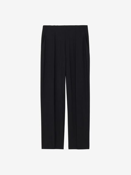 フロントにほどこした内タックがお腹周りをすっきり見せます。ウエストはゴム仕様なので着脱も簡単。横に広がらずストンと落ちるようなシルエットで着痩せ効果も期待できます。水着の上からさっと着用したり、リラックスパンツとしてデイリーユースすることもできます。