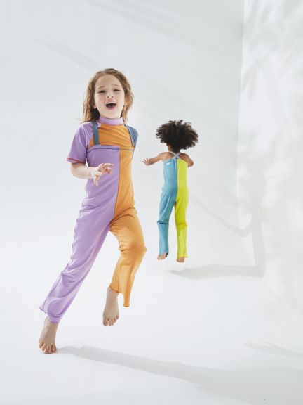 「太陽と水と遊ぶ」をテーマとしたKIDSコレクション『Speedo Green』。水遊び用に企画されたユニセックスのオーバーオールです。