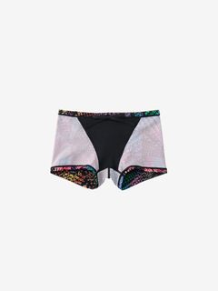 脚さばきのいいレッグ丈(股下6cm )。フロントV字に裏地付き。