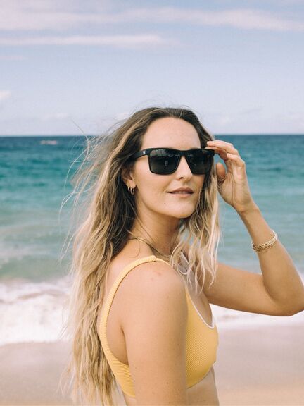 スクエア型を採用したプエルト。大胆なブロウラインが特徴的なスポーツタイプ。キバと似たようなシルエットですが、よく見るとノーズのところや、フレームのラインの違うやサイズ感も違います。オーバーサイズはしっかり目を保護してくれるので安心です。レンズ色はグリーンベースの黒色です。