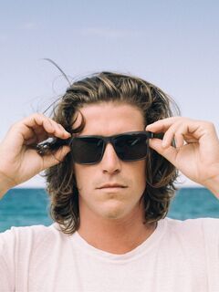 スクエア型を採用したプエルト。大胆なブロウラインが特徴的なスポーツタイプ。キバと似たようなシルエットですが、よく見るとノーズのところや、フレームのラインの違うやサイズ感も違います。オーバーサイズはしっかり目を保護してくれるので安心です。レンズはグレーベースの黒色です。