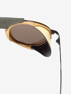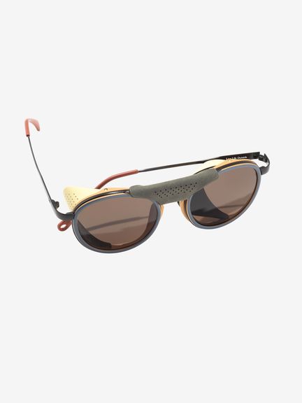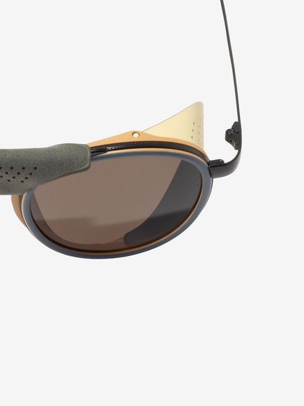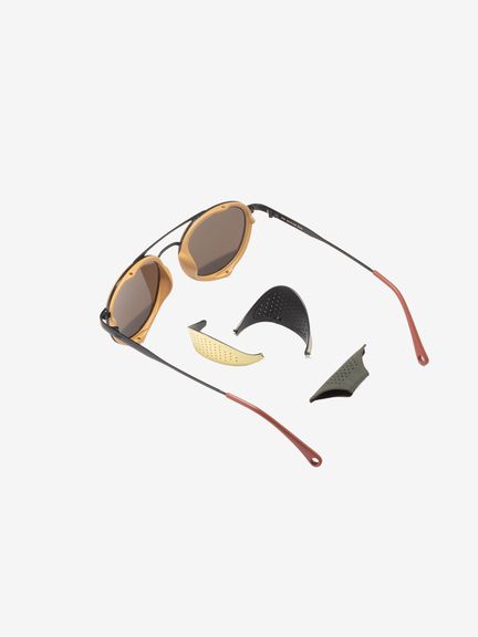 プレミアムシリーズとアルパインシリーズを融合したハイエンドコレクションで、レトロな雰囲気がSUNSKIらしさを際立たせます。スチールフレームではこめかみに当たって着用感が気になる場合がありますが、本モデルはこめかみ部分をやや広めに設計し、装着時の圧迫感を抑える配慮をしています。サイドシールドとセンターピースを取り外すとプレミアムコレクションの佇まいになり、普段使いにも馴染む仕様です。