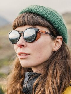 何十年も昔の登山やスキー時代にタイムスリップしたかのような、クラシックなラウンドシルエットのテラ。日差しを防ぐマグネット式のサイドシールドと、グリップ力を高めるラバー製のノーズパッドが特徴です。SUNSKIの中で一番人気のDipseaをもとに作られたこのモデルは、男性・女性を問わず着用しやすいデザインです。