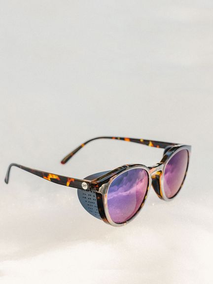 何十年も昔の登山やスキーの時代にタイムスリップしたかのような、クラシックなラウンドシルエットのテラ。日差しを防ぐマグネット式のサイドシールドと、グリップ力を高めるラバー製のノーズパッドが特徴です。SUNSKIの中で一番人気のディプシーをもとに作られたこのモデルは男性、女性問わず着用しやすいモデルです。こちらはミラーレンズです。