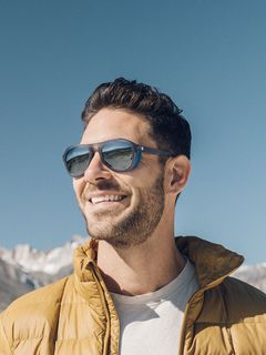 発売当初数々の賞を受賞したモデルのツリーライン。クラシックな飛行士と昔のアルピニストのイメージをミックスさせたデザインで、取り外し可能なマグネット式サイドシールドが側面からの眩しさも防ぎます。またサングラスの曇りをできる限り防ぐために小さな穴を空けています。アルパインシリーズはSUNSKIが提案するアウトドアスポーツに適しているカテゴリーです。こちらはミラーレンズです。