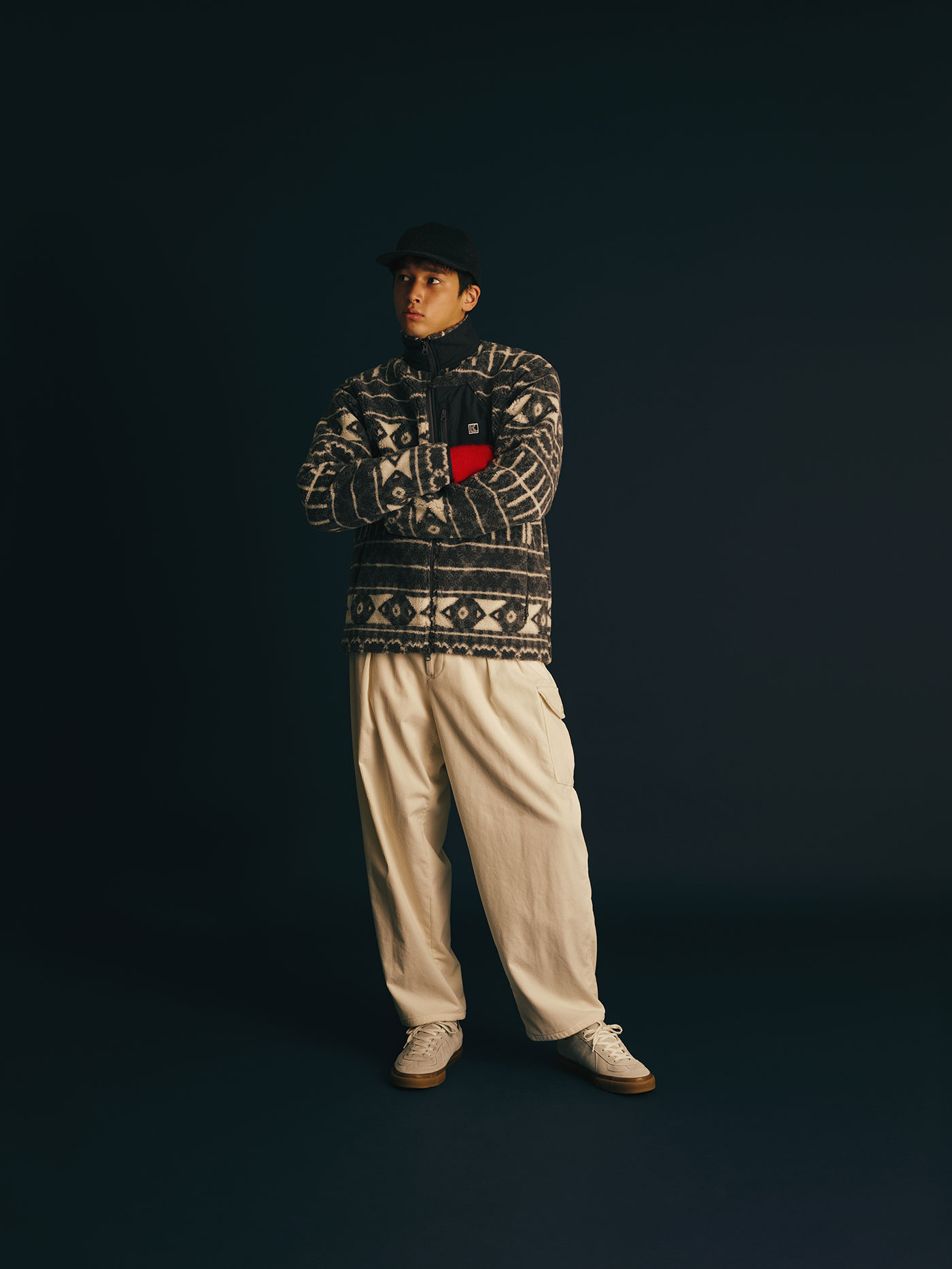 いつものスタイリングにファイバーパイルの小物をプラス1して