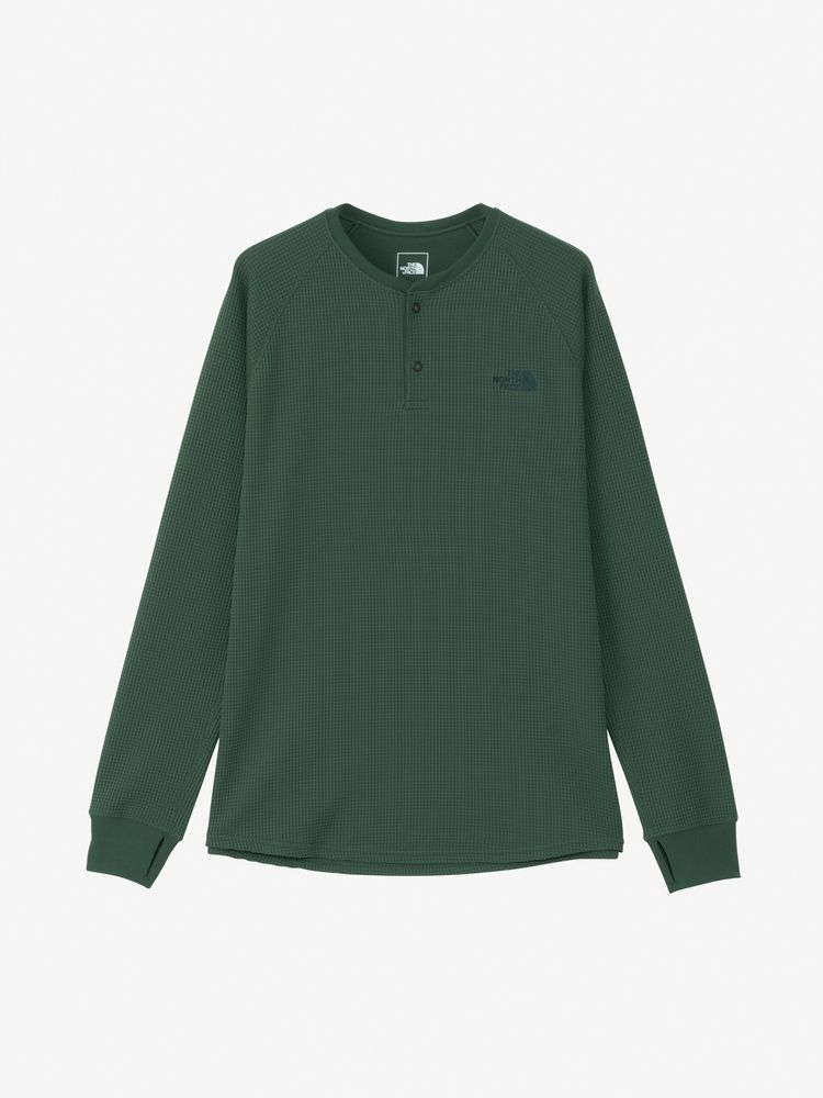 ランニング時に必要な高い吸汗速乾機能を備えた、ヘンリーネックデザインのロングスリーブ。素材はリサイクル率100%のポリエステルを使用し、空気を含んで暖かい凹凸のあるワッフル調生地に仕上げています。袖は手の甲の保温効果などの簡易的なグローブとして使用できるサムホール仕様です。