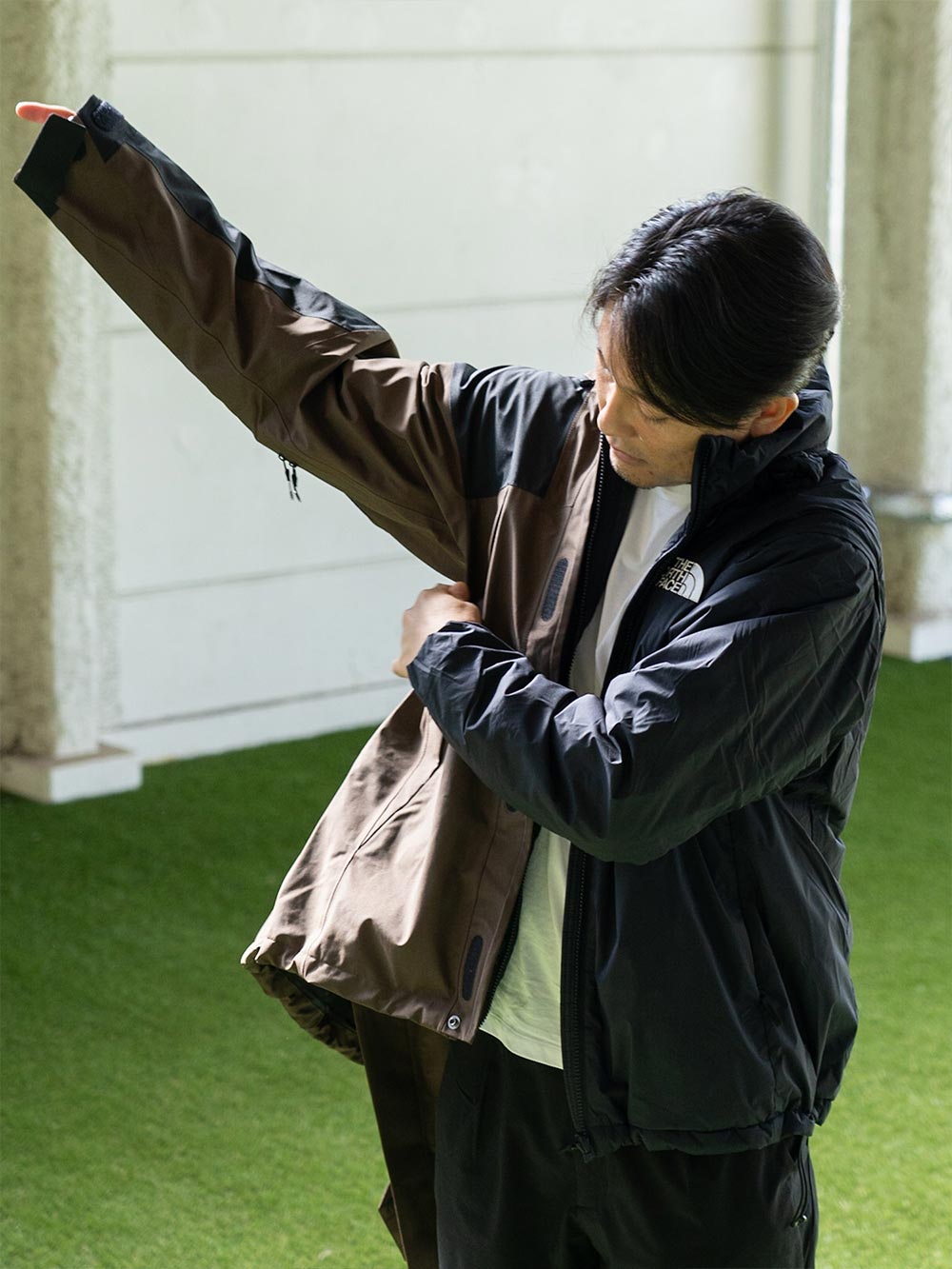 GORE-TEX PRODUCTSを採用した防水シェルジャケット。トレッキングやキャンプのアウトドアのみならず、デイリーユースにも適した1着です。耐久性の高い70デニールリサイクルナイロンを表生地に使用し、やや長めの着丈で保温性を確保。フロントはダブルフラップ仕様で防水性を高めています。内側の専用ファスナーでフリースやダウンなどのインナーを連結できるジップインジップシステムに対応。