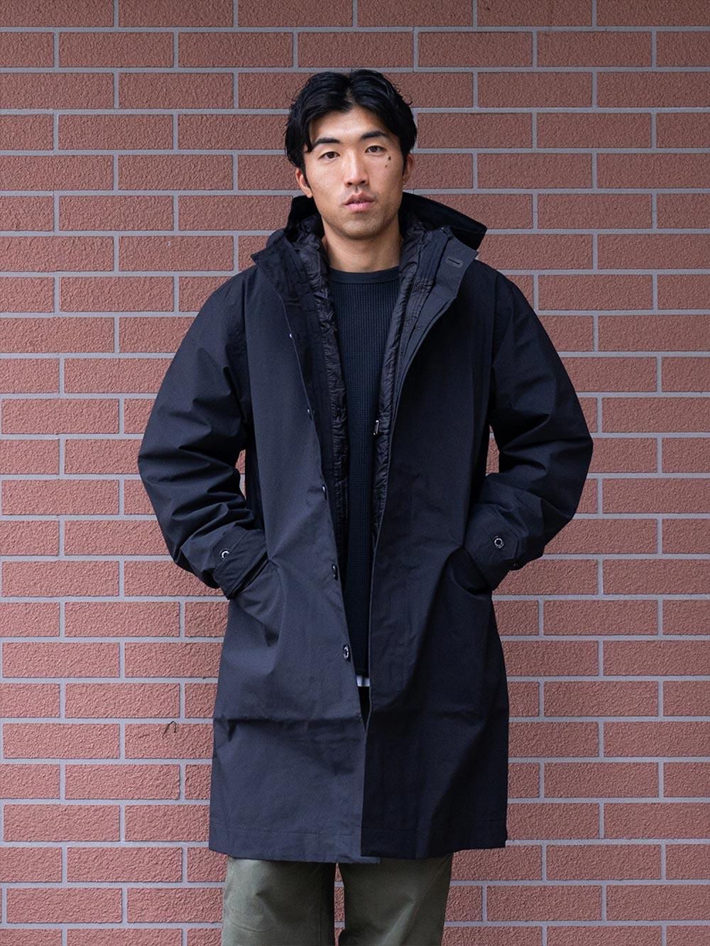 街でのスタイルに映え、急な天候の変化にも対応できるGORE-TEX PRODUCTSの防水コート。シンプルなデザインのフード付きで、ビジネスシーンにも活躍します。表地には耐久性の高い70デニールリサイクルナイロンを採用。適度な厚みがありながらもなめらかな着心地です。インナーを連結できるジップインマグネシステム対応モデルで、インナーの連結にはマグネットを採用。袖口のスライダーと首元のマグネットで連結ができ、マグネットは取り外しが可能です。