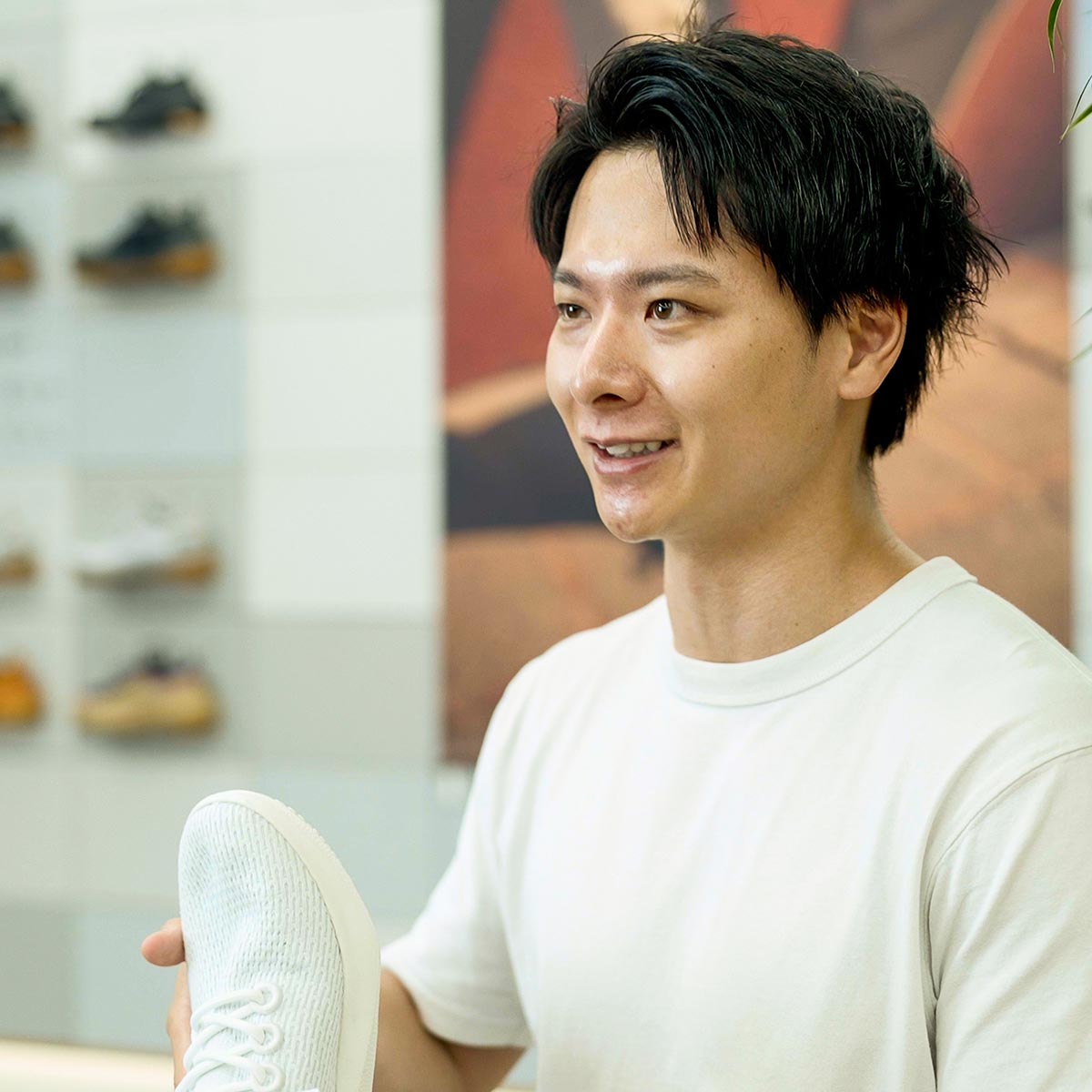 「スタッフさんからどういった面で環境に良いのかを教えてもらい、自分がこの靴を履いたらサステナビリティに貢献できるんじゃないかと思って、買ったのが始まりでした。