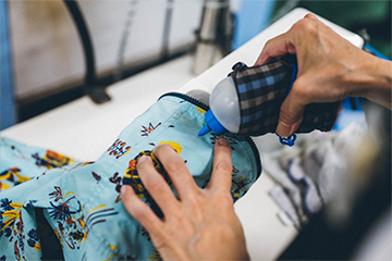 Tシャツをていねいに洗浄して鮮やかなオレンジ色で染色。